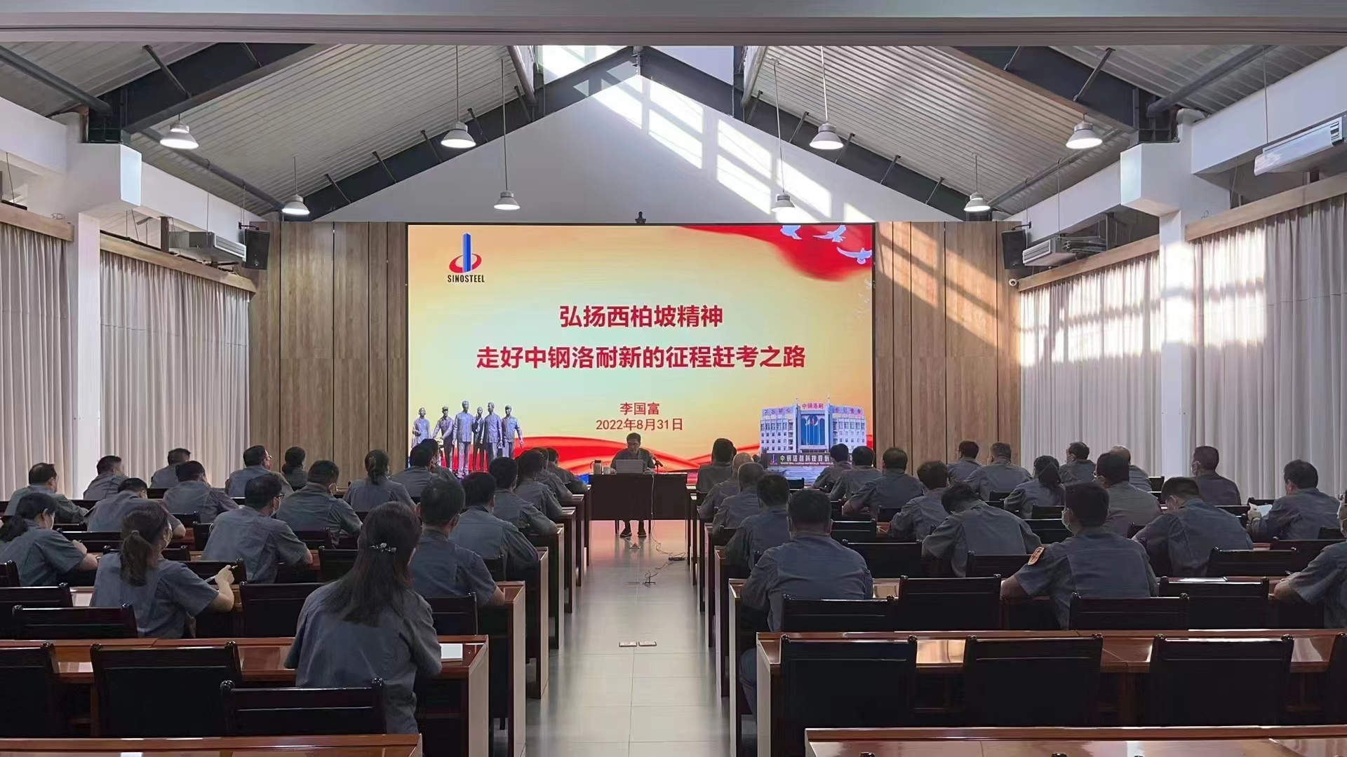 8月31日下午,中鋼洛耐黨委書記、董事長李國富為聯系點黨組織講授專題黨課,鎂質分廠黨總支、復合黨支部、氧化物黨支部、功能不定形黨支部黨員參加黨課學習。
