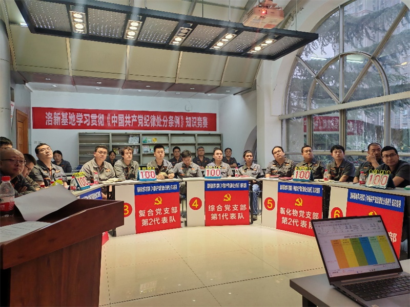 近日,為慶祝中國(guó)共產(chǎn)黨成立103周年,進(jìn)一步增強(qiáng)全體黨員學(xué)習(xí)貫徹《中國(guó)共產(chǎn)黨紀(jì)律處分條例》的政治自覺(jué)和思想自覺(jué),將遵規(guī)守紀(jì)內(nèi)化于心、外化于行,由洛新基地黨委、紀(jì)委主辦的黨規(guī)黨紀(jì)知識(shí)競(jìng)賽在基地三樓會(huì)議室隆重舉行,來(lái)自各黨支部6支代表隊(duì)18名選手集聚一堂,共同參與到這場(chǎng)知識(shí)盛宴中。